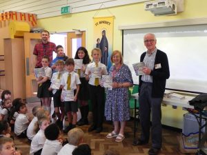 In September, FoHS president Mike Bishop presented St Benedict’s Roman Catholic Primary School with 70 copies of the Rail Safety book, to head teacher Hannah McGuire and Year teacher Sonny McCarthy. To conclude the assembly, the children sang a hymn accompanied on the piano by music teacher and FoHS member, Rosemary Thomason.